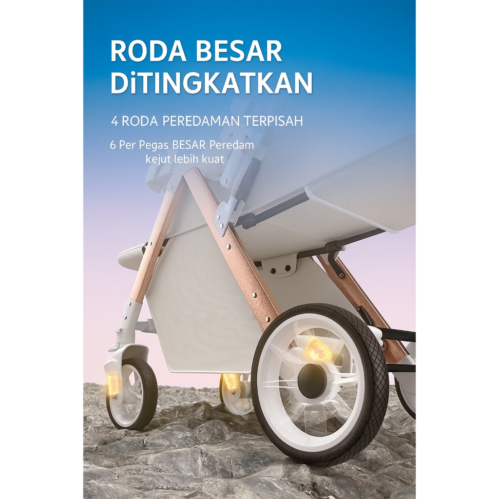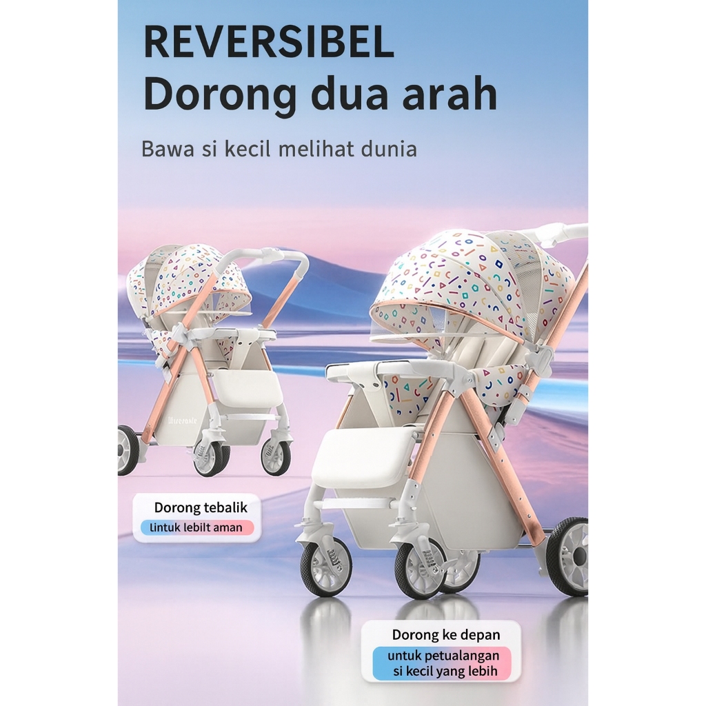 Stroller Bayi Lipat Otomatis Travel Ringan Bisa Tidur Newborn Kapasitas 100kg