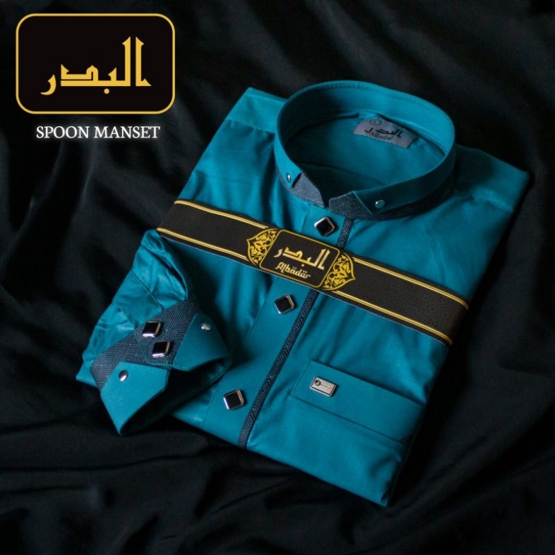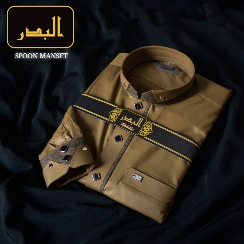 Jubah Pria Gamis Muslim Terbaru Albadar Katun Premium Kombinasi Manset kombinasi Hitam putih gold