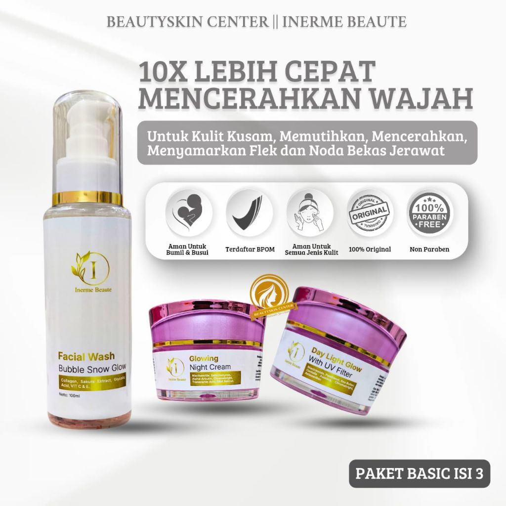 Inerme Beaute Paket LuxeGlow Package 3in1 Basic Whitening All Varian Series Facial Wash Sunscreen Mencerahkan Kusam Diwajah