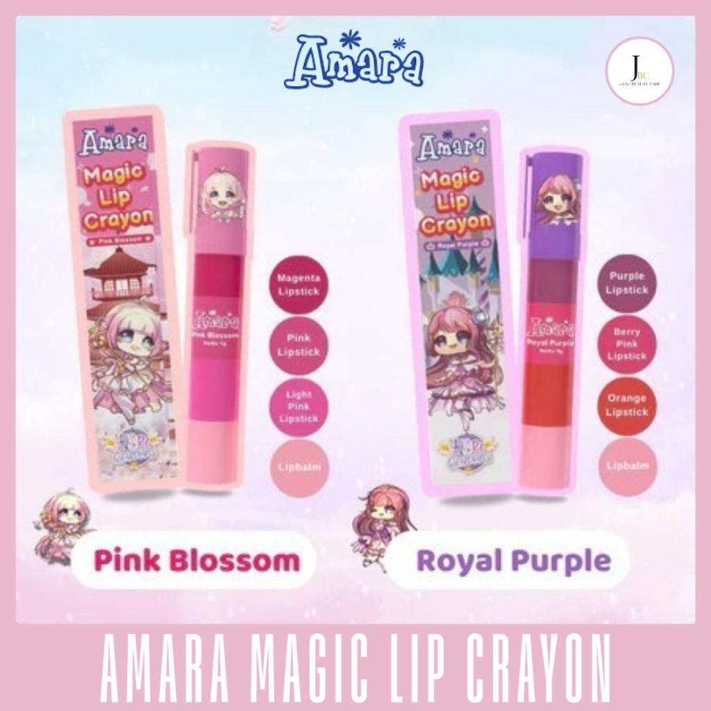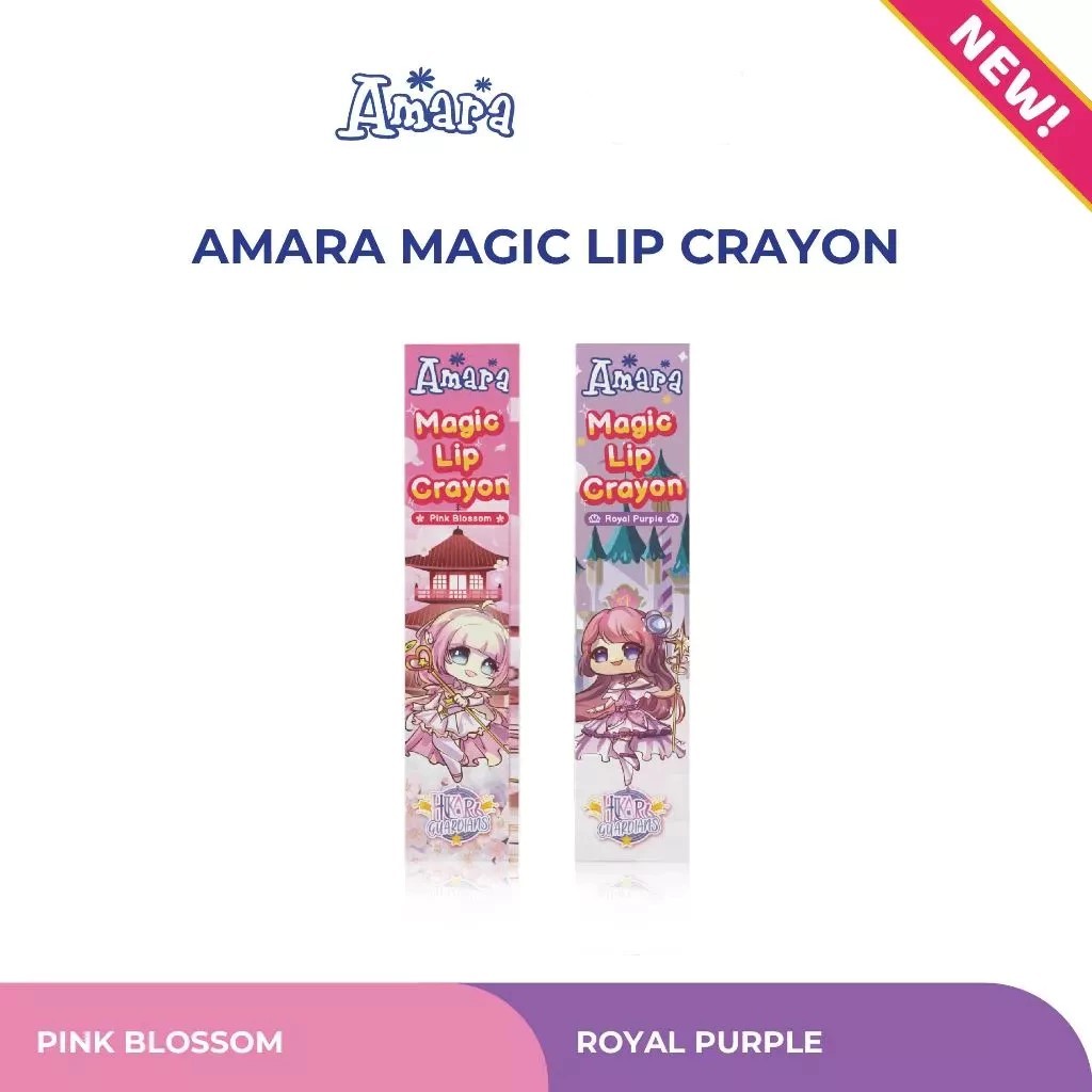 Amara Magic Lip Crayon 4in1 – Lipstik Anak Aman & Lucu + Lipbalm | Pink Blossom & Royal Purple
