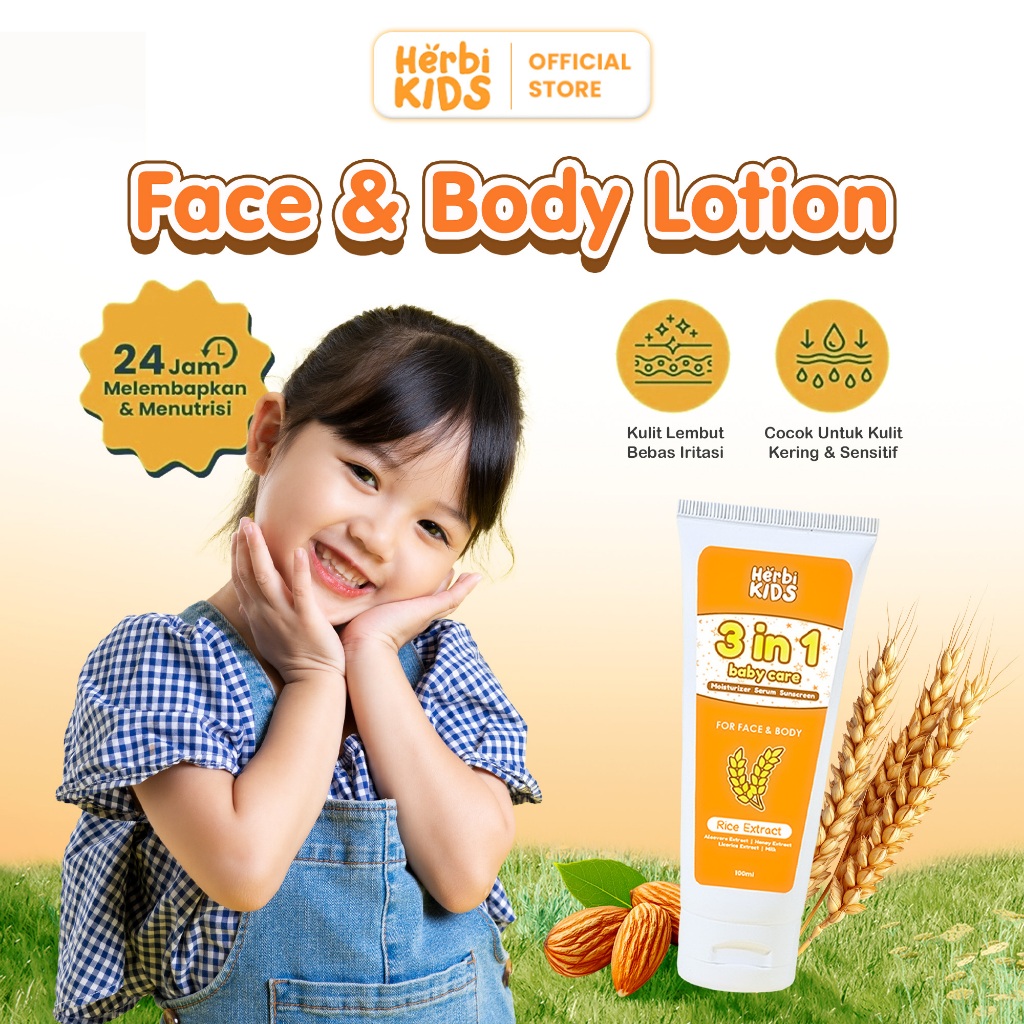 Herbikids - 3in1 Face And Body Lotion 100ml - Krim Pelembab dan Anti Iritasi - Uv Protection (BPOM)