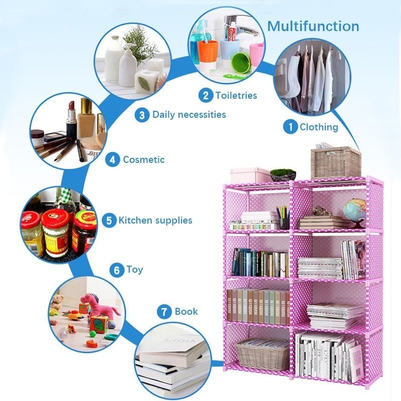 Rak Buku 3 Baris Portable DIY Rak Buku 4 Susun Serbaguna Tingkat Rak Penyimpanan Mainan Serbaguna
