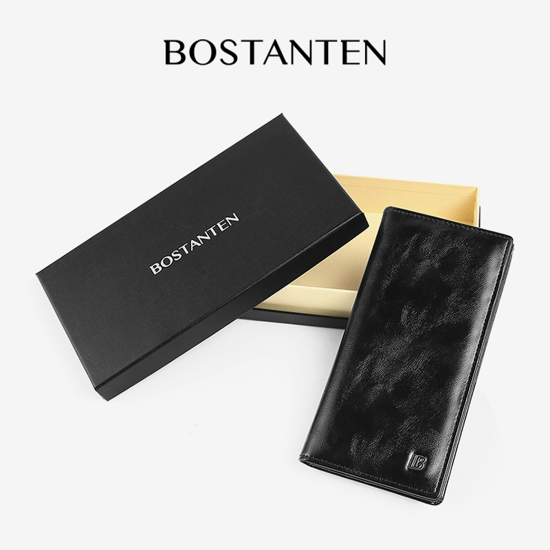 BOSTANTEN Dompet Lipat Panjang Pria Slot Kartu Kulit PU Warna HitamKopi