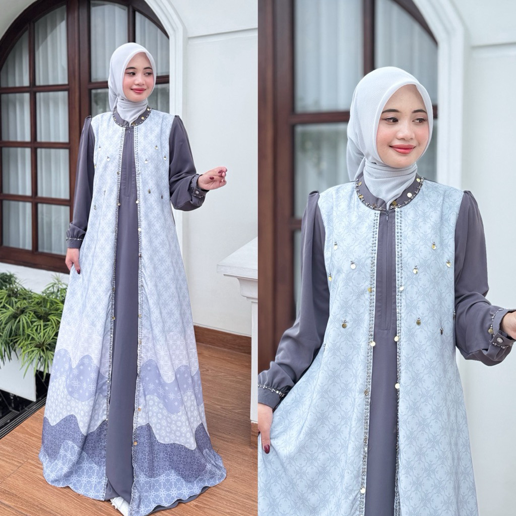 AURORA DRESS III BAHAN MARBELLA GAMIS WANITA MUSLIMAH REMAJA DEWASA IBU IBU BUSUI OUTER MOTIF KOMBINASI POLO