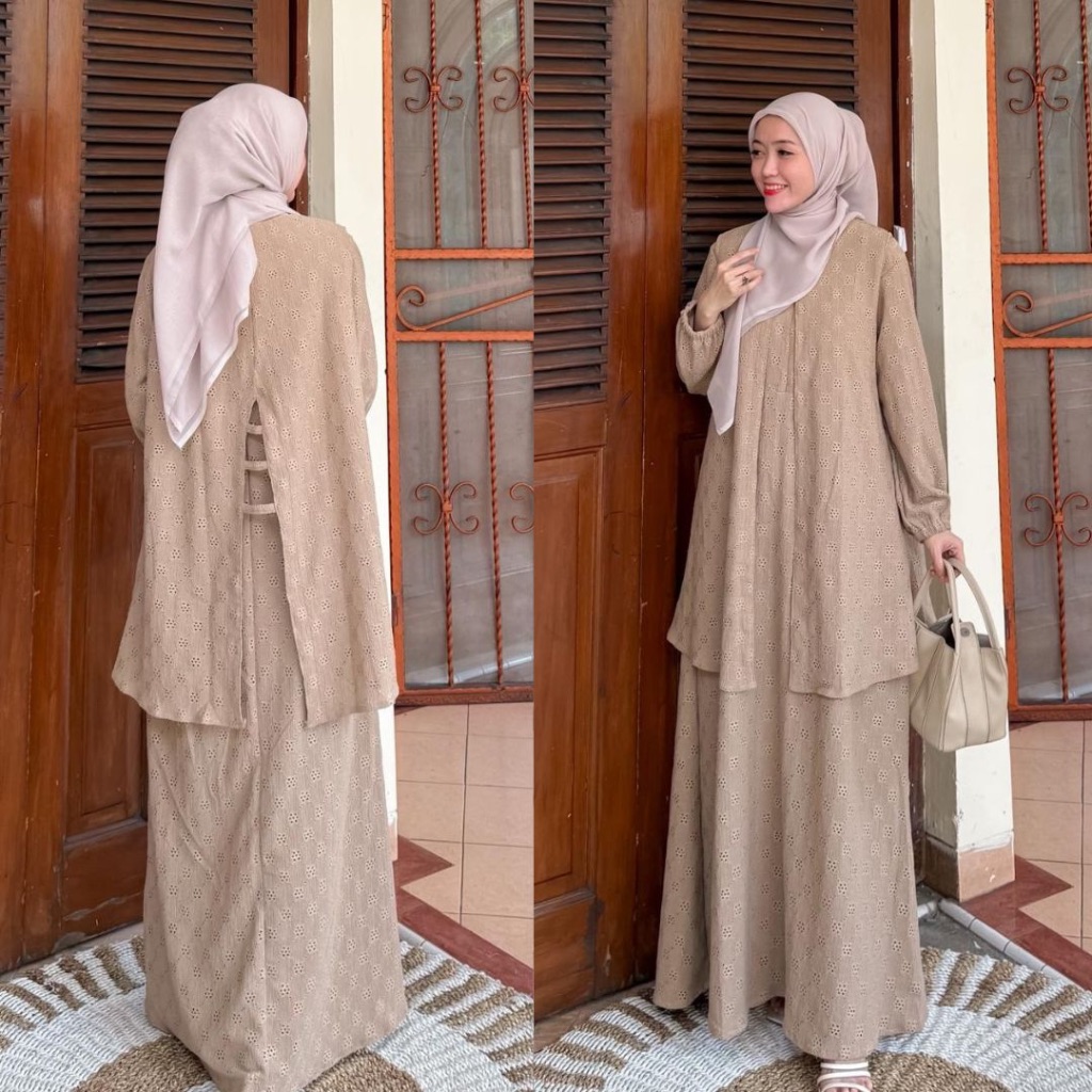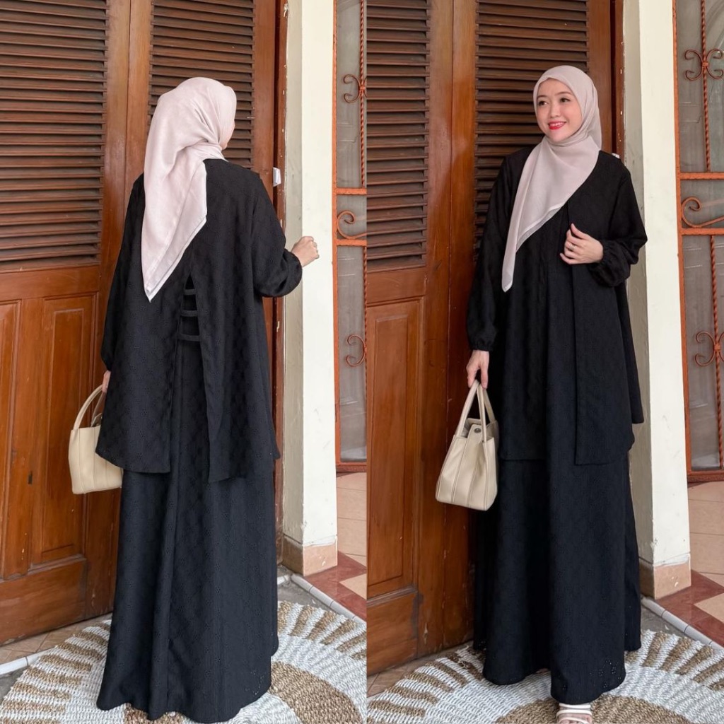 New Motif Fateema 2In1 Vol V Dress dan Outer Outfit Simple Lepas Pasang Baju Busui Gamis Outfit Elegant Ko