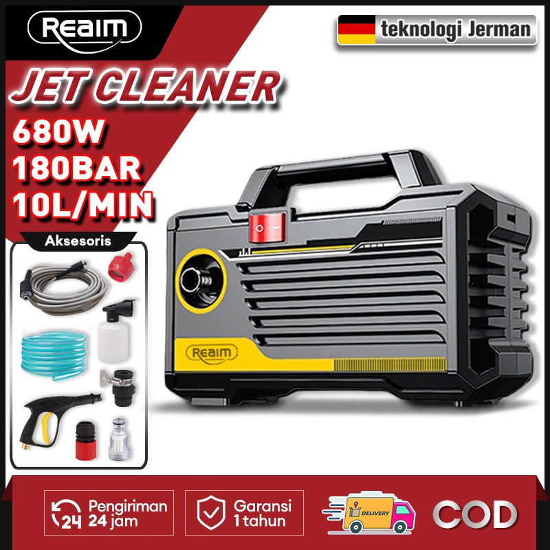 Reaim Jet Cleaner Black 680W 180Bar Semprotan Cuci Motor Mesin Cuci Motor Mesin Cuci Mobil Alat Cuci Motor