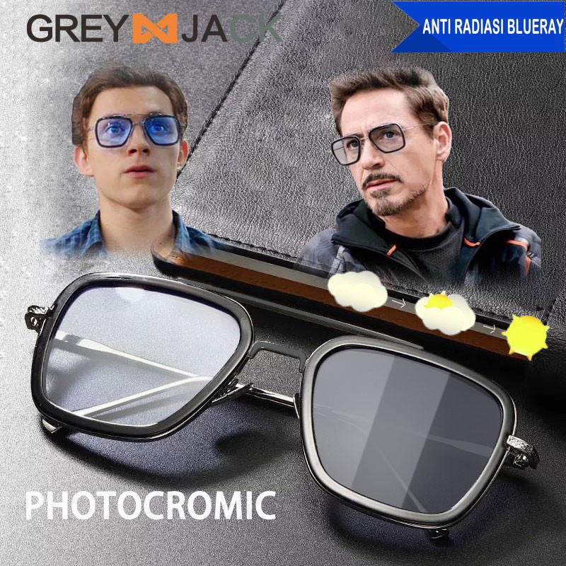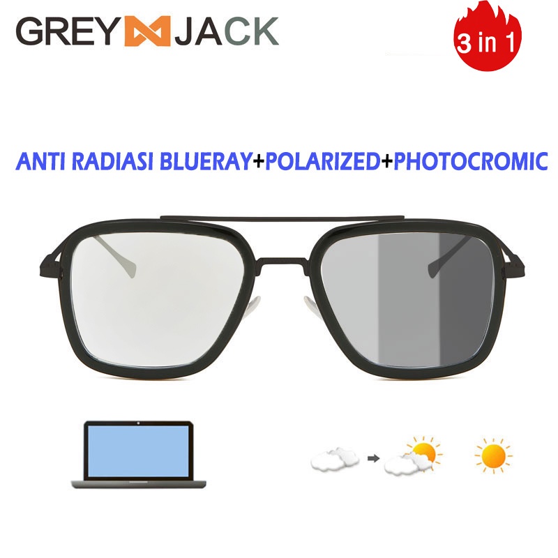 GREY JACK Kacamata Pria Style Tony Stark Anti Radiasi +Photocromic+Polarized 3IN1 Lensa Multifungsi Fashion Pria 2836