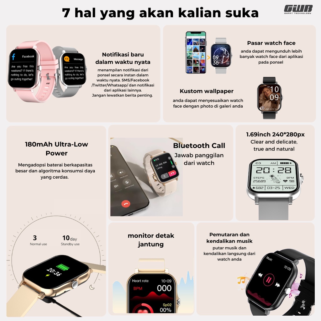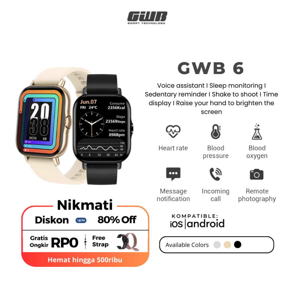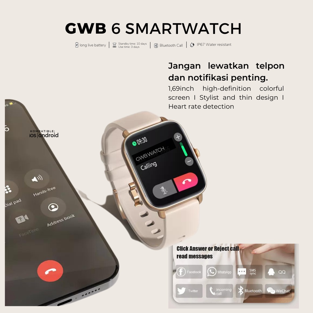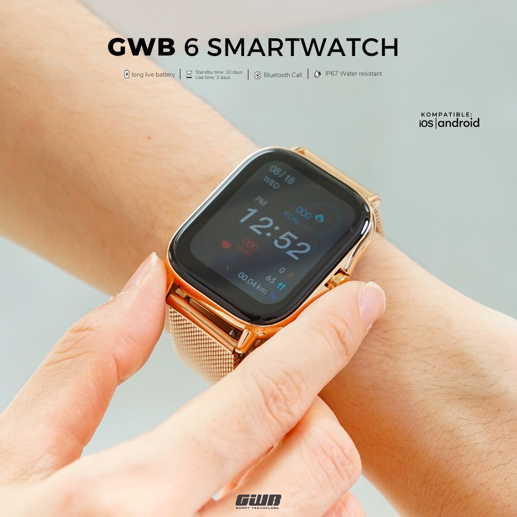 GWB 6 Smartwatch Original | Magnetic Charging | Kalkulator | EKG | HeartRate | Sports Mode | Angkat Telepon Masuk | Tele