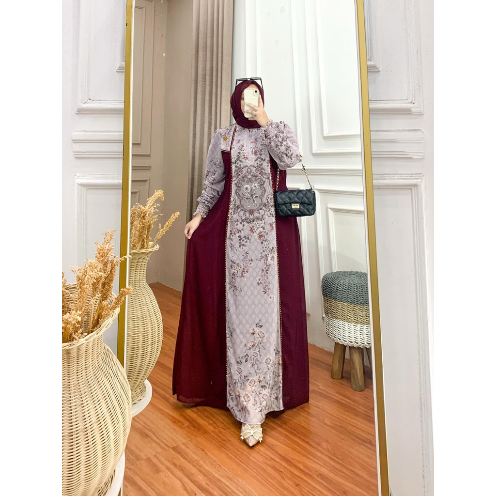 ALUNA DRESS Gamis wanita set hijab Seruty printing kekinian Simple Elegant Lebaran 2026