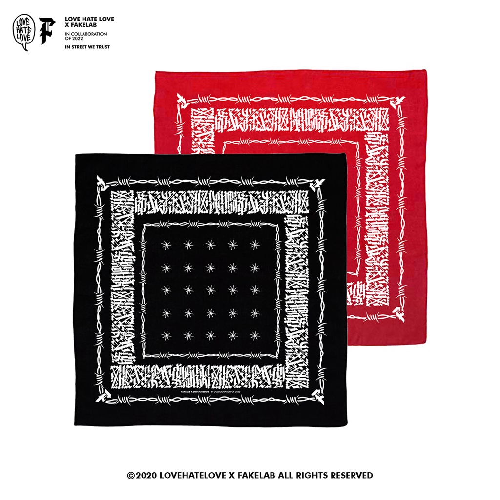 Fakelab X Love Hate Love Bandana Hitam Merah Dengan Freebies / Slayer