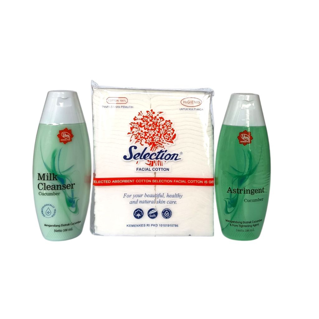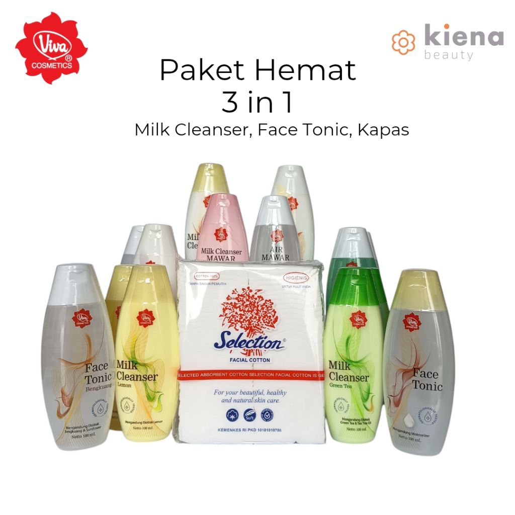Paket Hemat Viva Milk Cleanser + Face Tonic + Kapas Selection 3 in 1 Air Mawar