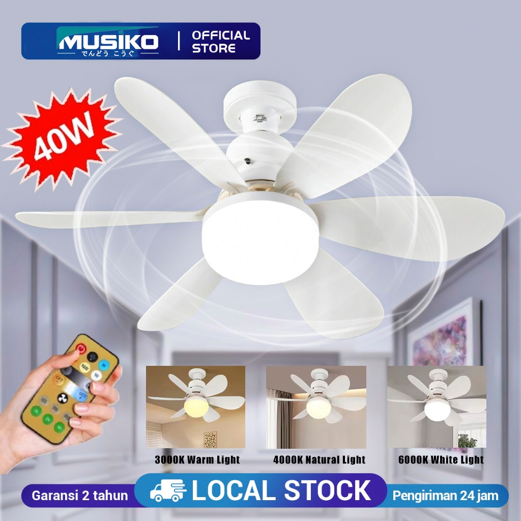 [PROMO] Musiko Lampu Kipas LED 2in1 30W40W 3 Warna Disesuaikan + Remote Motor DC Tanpa Bisin