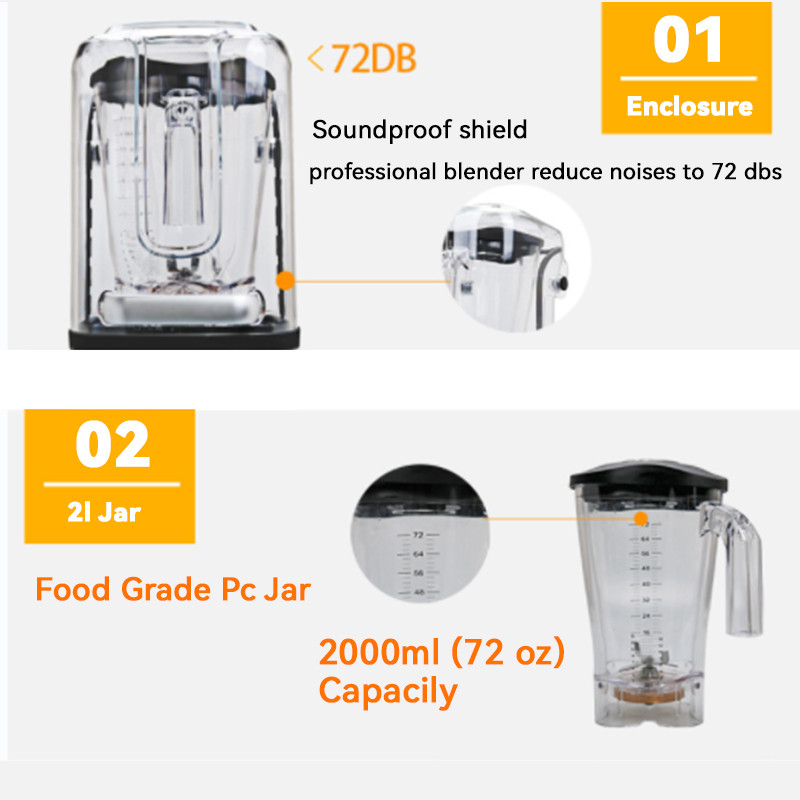 Desain Mode 8003A Daya Tinggi 1800W /2L Blender Komersial Kedap Suara Dengan Penutup Pembuat Smoothie Es Peralatan Dapur