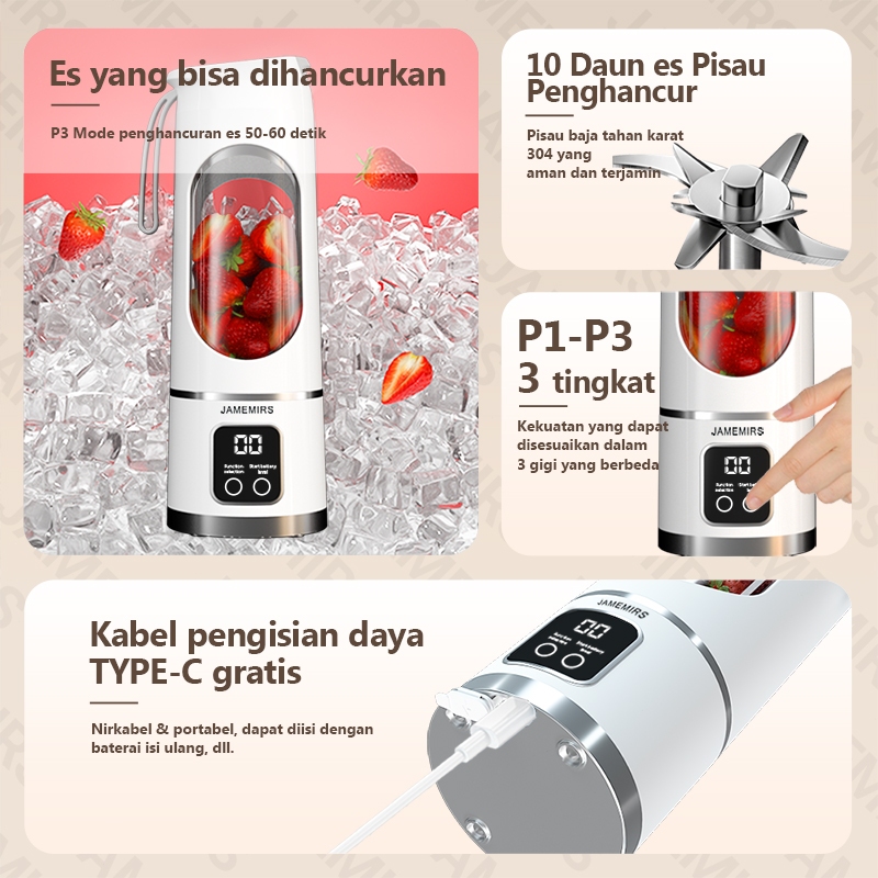 JameMirs【Mesin Jus 3 dalam 1】Beragam Fungsi Blender Portabel 500 mL 10 buah pisau Mesin Jus Mini Nirkabel Pengisian Daya