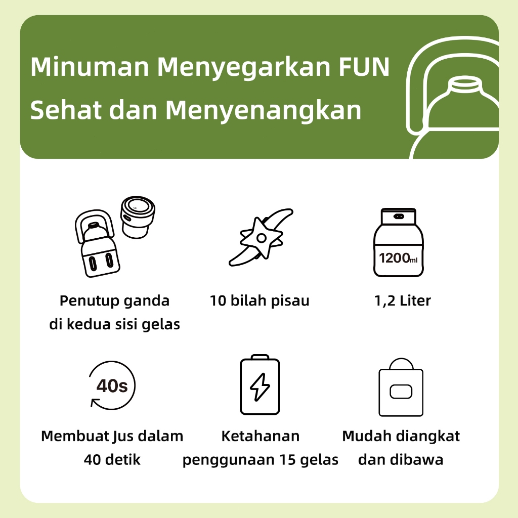 Pembuat Jus Portabel, Botol Jus Kapasitas Besar Serbaguna, Tanpa Kabel, Kapasitas Besar 1200Ml, Blender Portabel Dapat D