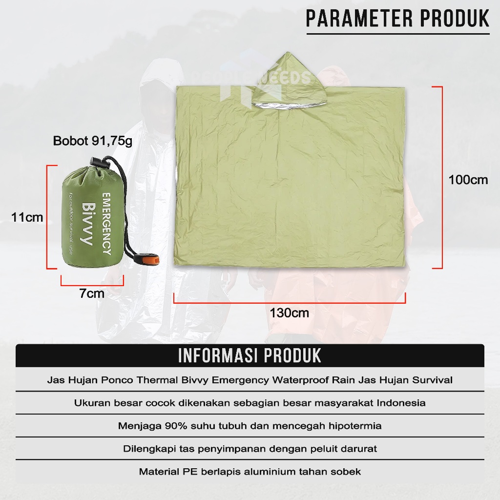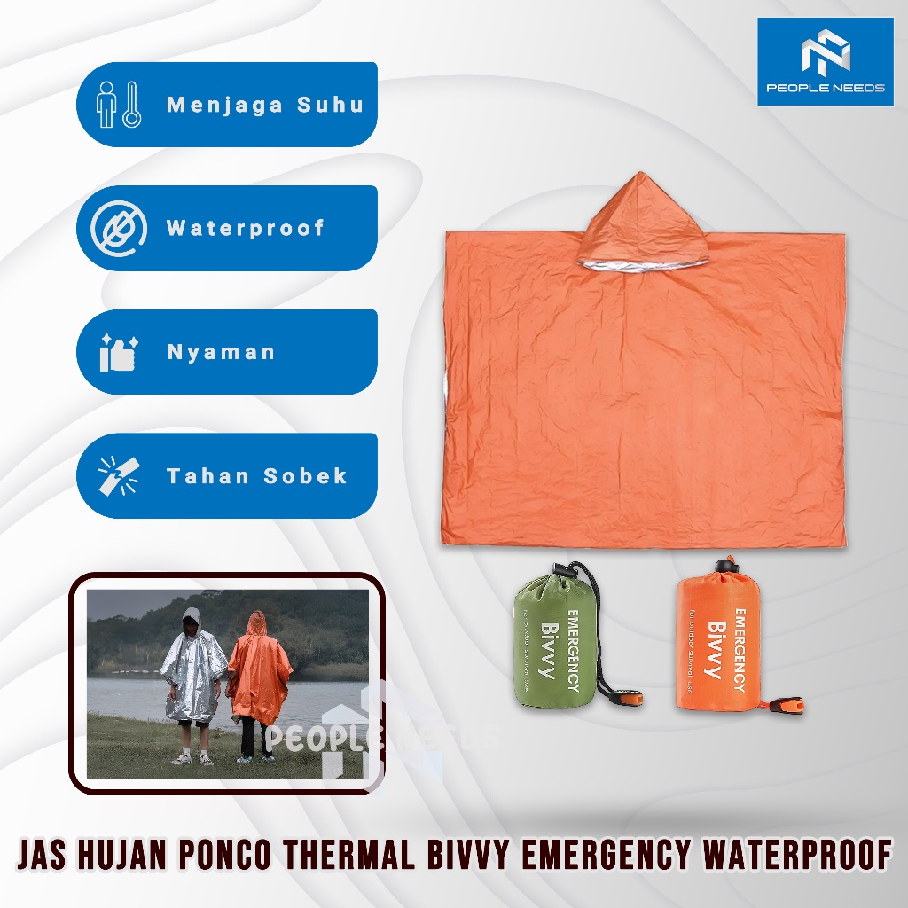 Jas Hujan Ponco Thermal Bivvy Emergency Waterproof Rain Jas Hujan Survival Camping Hiking