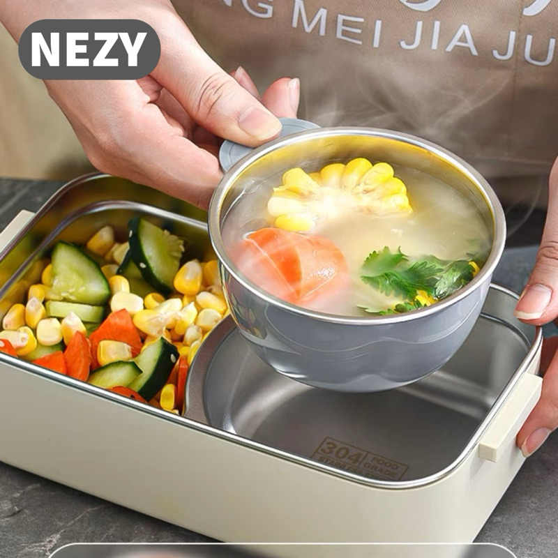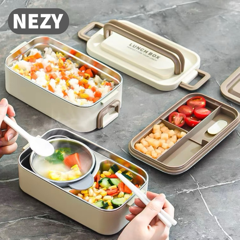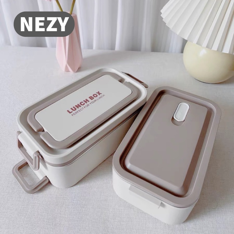 NEZY Premium Kotak Makan Stainless Steel 304 2 Tingkat Bekal Makanan Bontot White Lunch Box Nordic Aesthetic Style