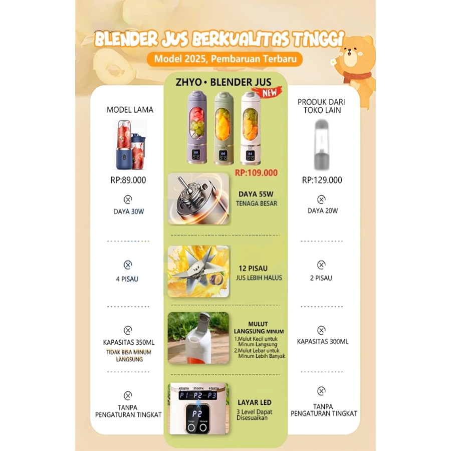 Xiaomi Juice Blender Portable Jus Belender Buah 12 Pisau Mini Juicer Ice Crushing 3000mah Rechargeable 450ml