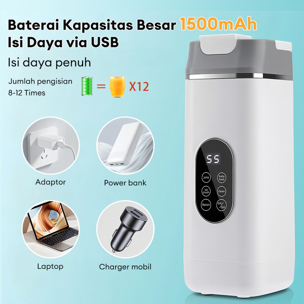 JVJH Mini Juicer Portable 420ML 4-in-1 Elektrik Blender Jus Buah Ice Crusher Travel & Home Use