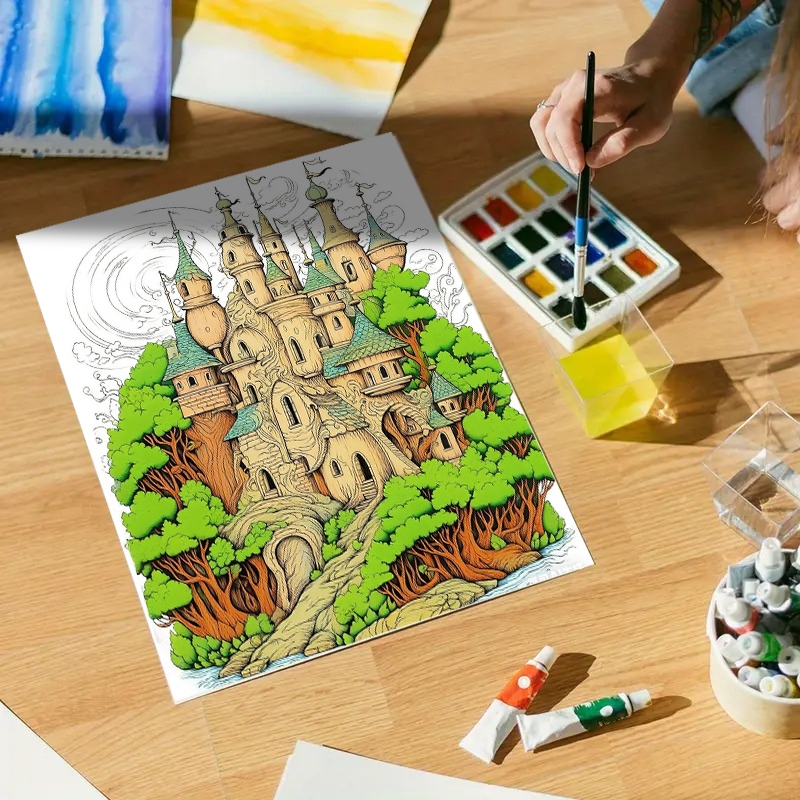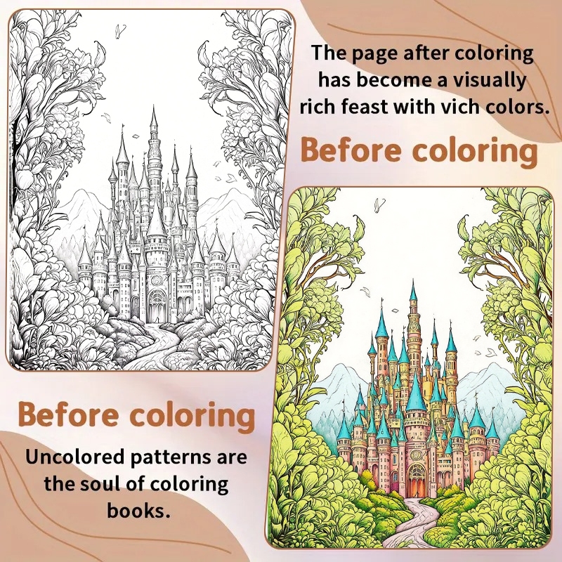 Buku Mewarnai--- Kastil Dongeng Latihan menggambar Sketsa Gambar Meniru