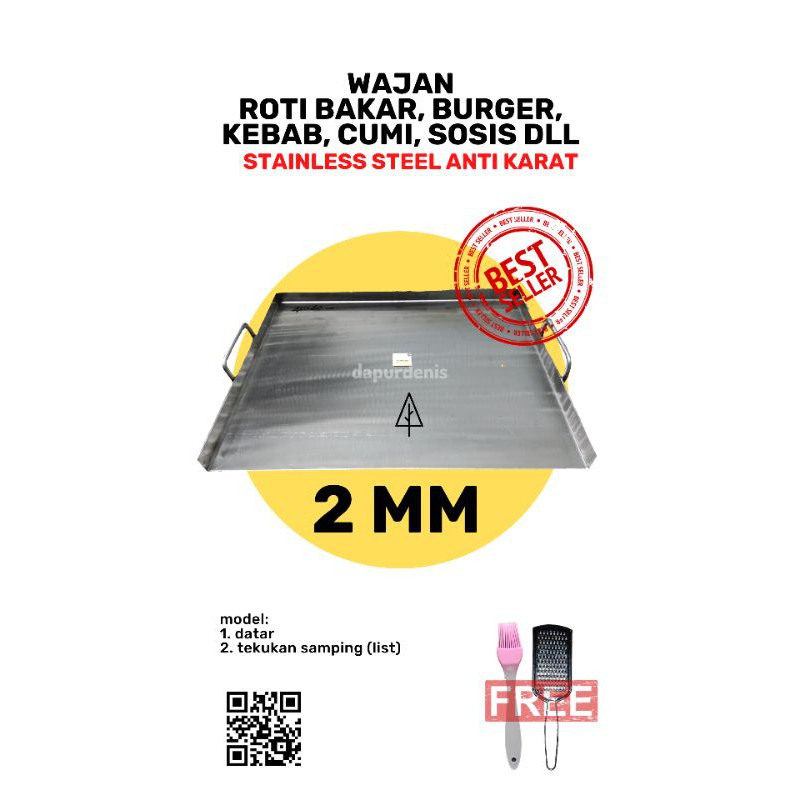(STAINLESS) WAJAN ROTI BAKAR STAINLESS TEBAL 2MM 2 MM / WAJAN ROTI JOHN, BURGER, KEBAB, SOSIS, CUMI, IKAN / TOAST PAN /