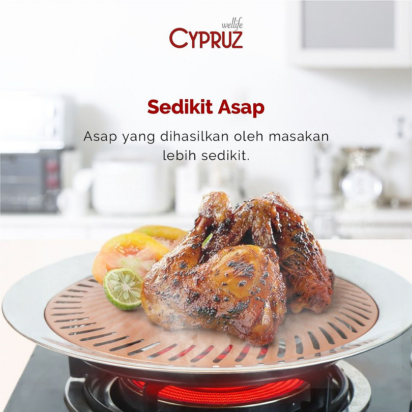 Panggangan BBQ Cypruz TG 0320 Ultra Grill Pan 25 cm Smokeles Round BBQ Gold Plating
