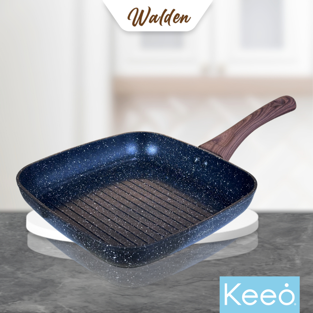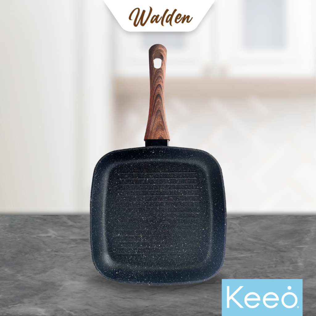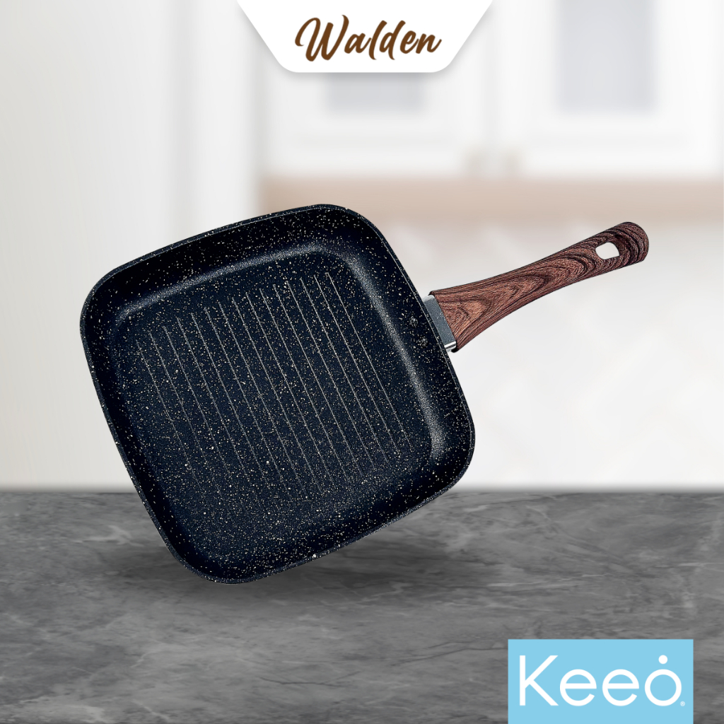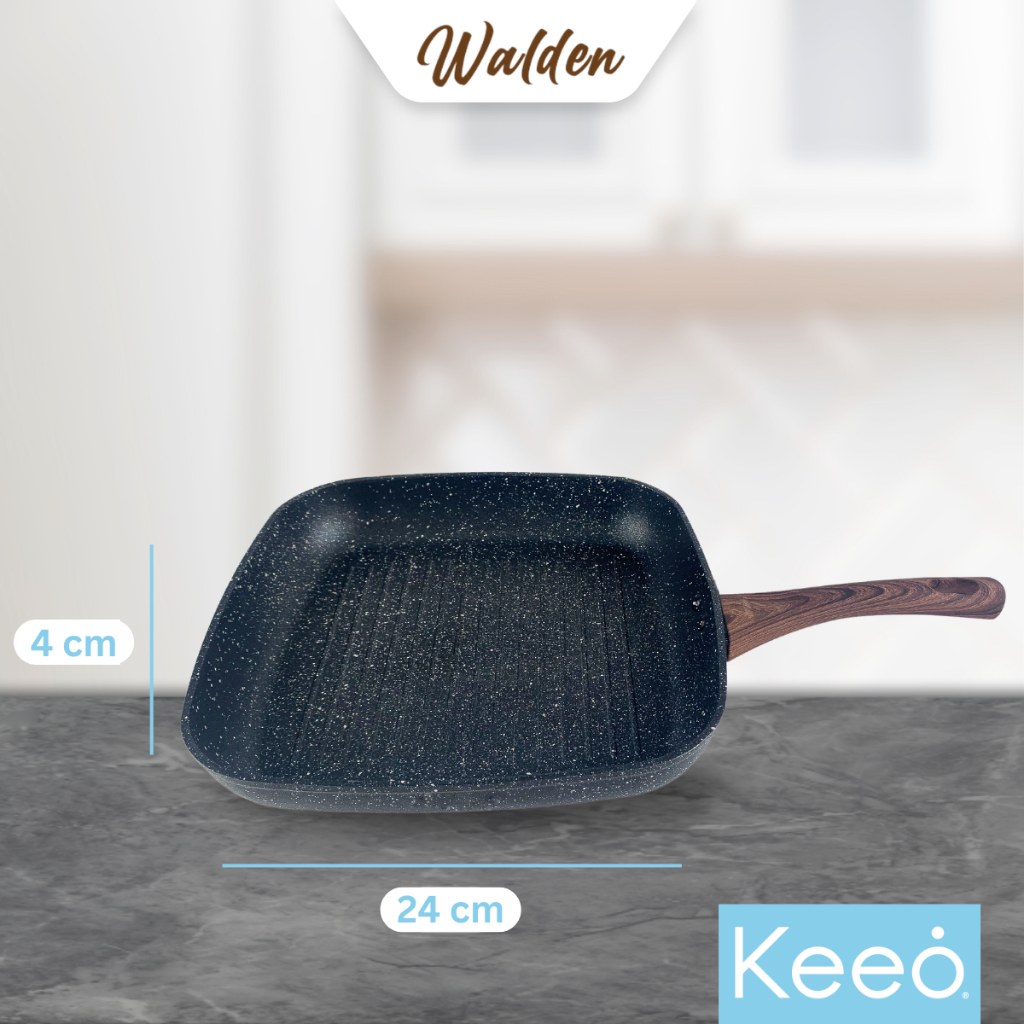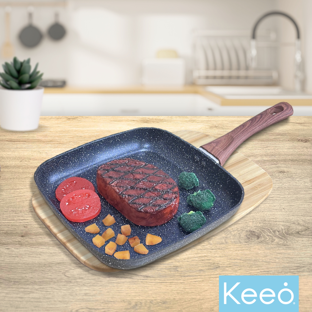 Keeo 24 cm Grill Pan Pemanggang Panggangan Anti Lengket Marble Granit Hitam
