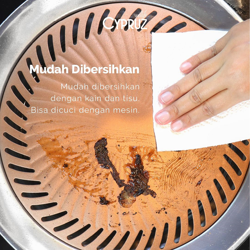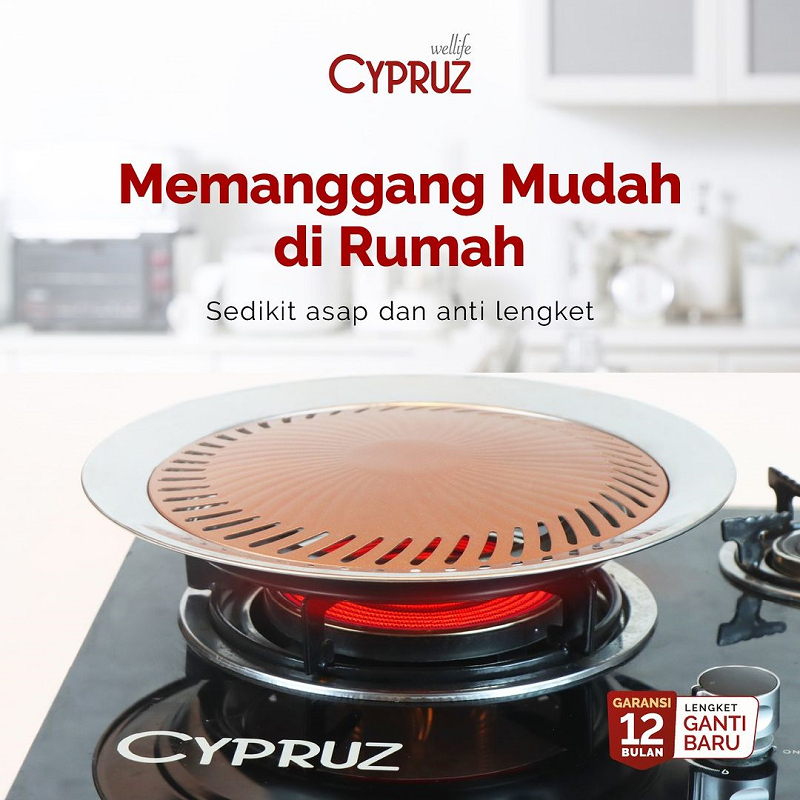 Panggangan BBQ Cypruz TG 0320 Ultra Grill Pan 25 cm Smokeles Round BBQ Gold Plating