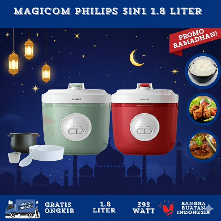 Philips Rice Cooker Magicom 1.8 L 3000 Basic Series Hd321032 Hijau Anti Lengket Freshdefense Technology Nasi Origin