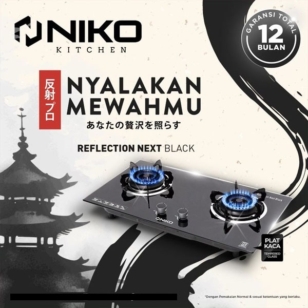 [PROMO] Niko Reflection Next Black Kompor Gas Tanam Kaca 2 Tungku
