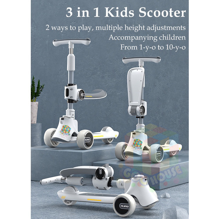 SKUTER ANAK 3 IN 1 SKUTER ANAK PEREMPUAN SKUTER LIPAT SCOOTER ANAK MUSIK SKUTER ANAK KIDS SCOOTER