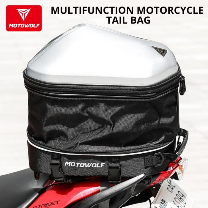 MOTOWOLF TAS BELAKANG MOTOR HARD SHELL TAIL BAG TAS HELM MULTI FUNGSI - SILVER, M