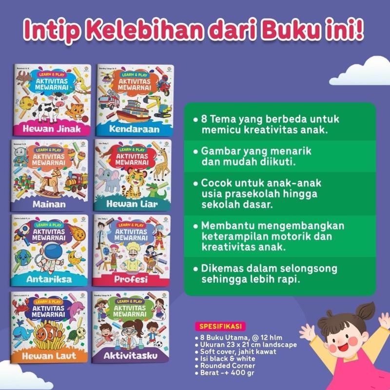 [isi 8 Buku] Buku Aktivitas Mewarnai - Usia tk, paud, sd/mi 3th - buku bergambar - mewarnai Books - anak - ziyadbooks