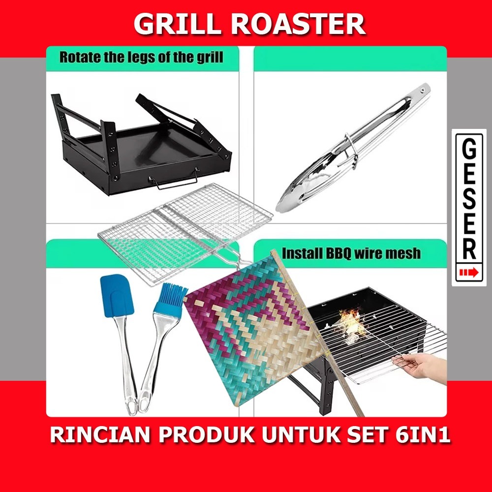 Paket Lengkap Alat Panggang Barbeque Grill Portable Roekre / Panggangan Grill Portable