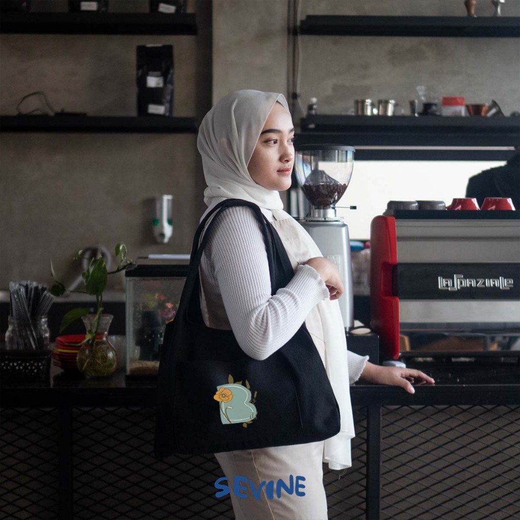 Sevine Nora Totebag Kanvas Tas Wanita Tote Bag Hobo Kantong Kuliah Kerja Sekolah Sekat Laptop Hitam Tebal Elegan Korea Aesthetic - NOQ