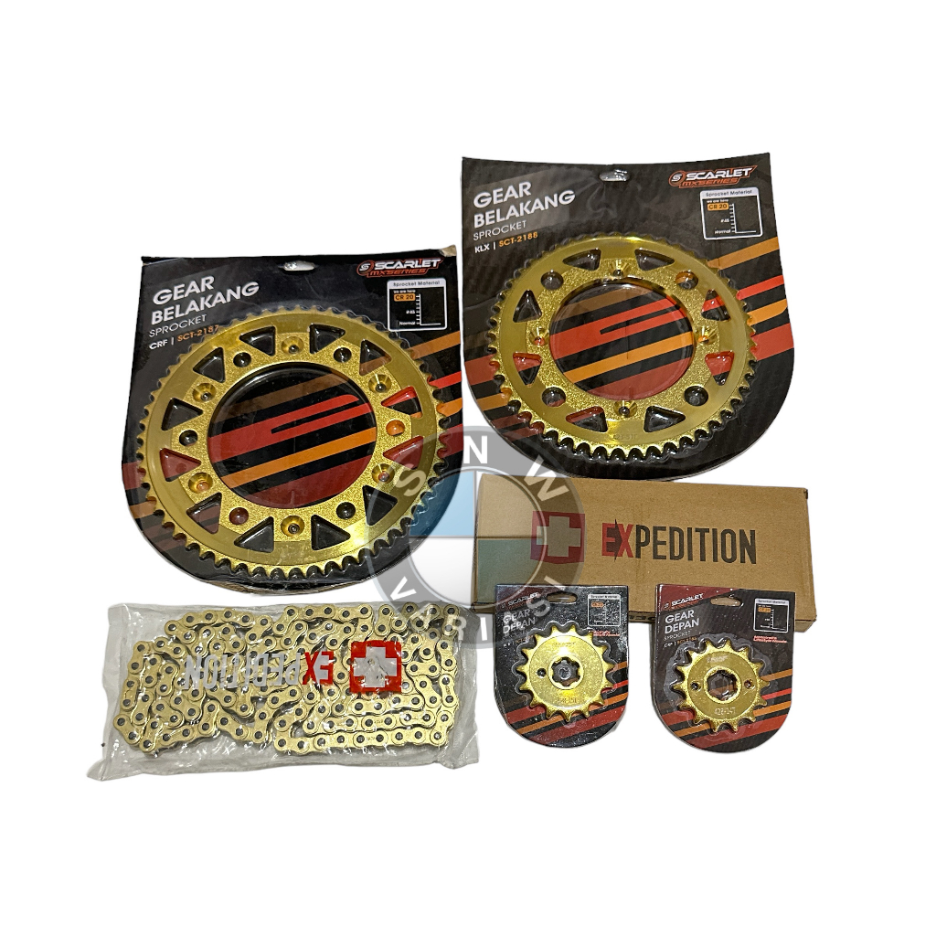 SCARLET RACING- Gear set CRF 150L Plus Rantai Expedition Gold Original Sepaket Gir set