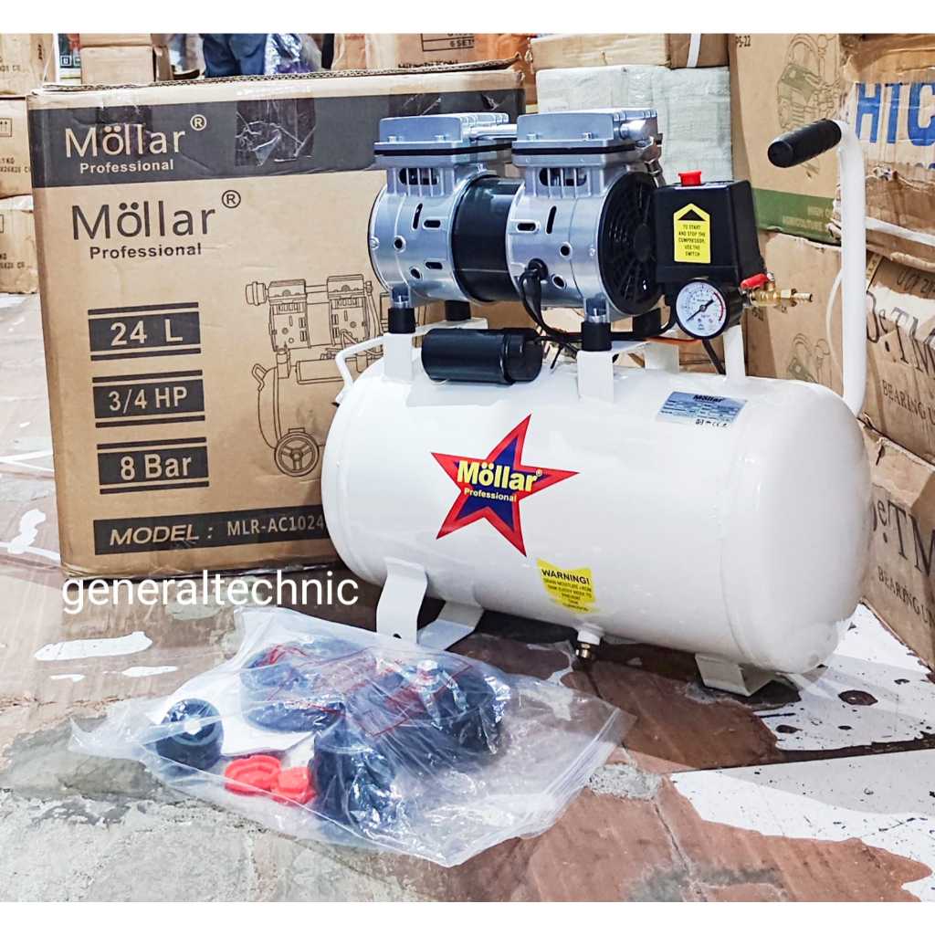 Kompresor Mollar 3/4HP 24Liter Portable Mollar Oiless Silent MLR-AC1024S Tabung Besar 24Liter Putih