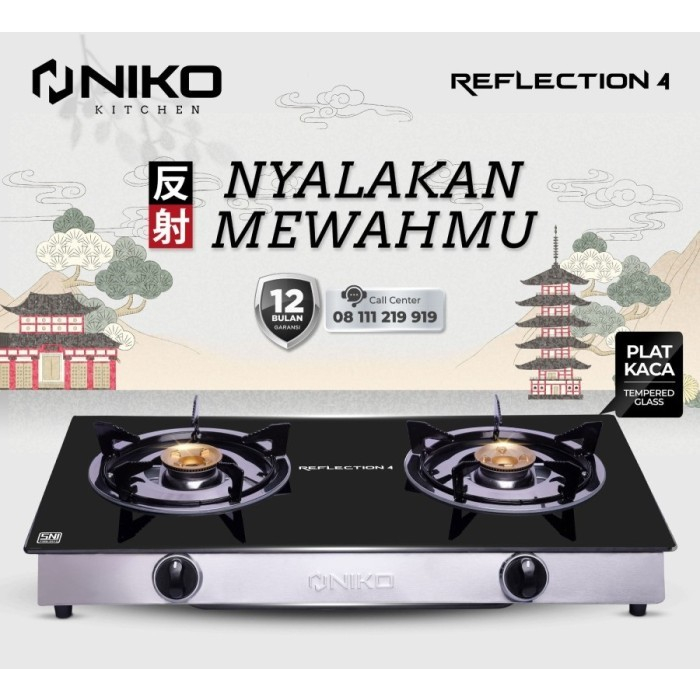 [PROMO] Kompor Gas Kaca Niko Reflection 4 Kompor 2 Tungku Kaca Tempered Glass