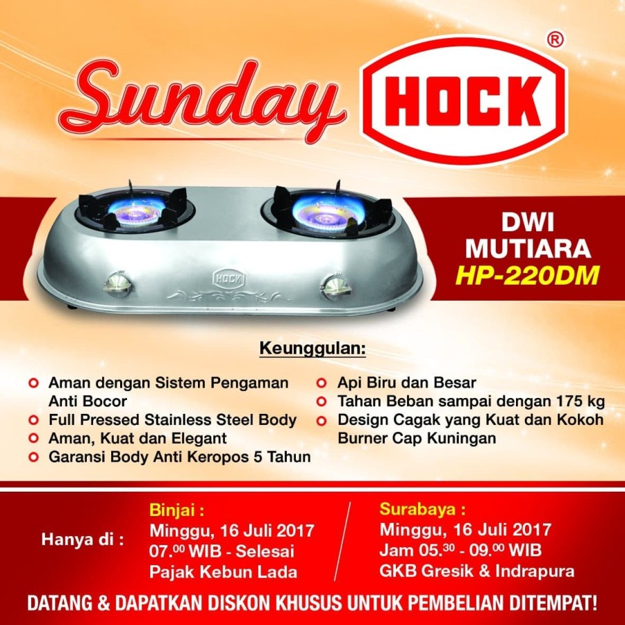 [PROMO] HOCK HP220DM DWI MUTIARA Kompor Gas 2 Tungku ORIGINAL