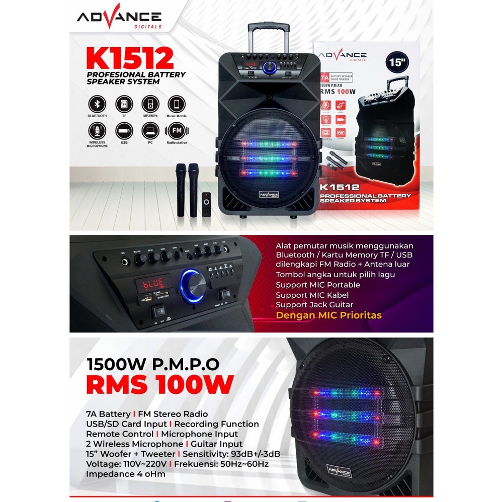 [PROMO] Speaker Aktif ADVANCE K 1512 15 inch Speaker Meeting Portable Bluetooth Free 2 Mic Wir