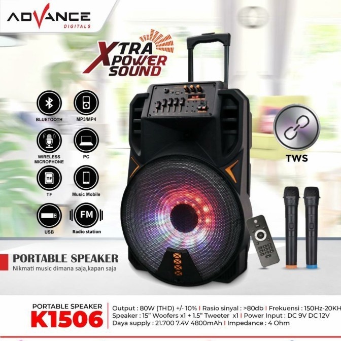 [PROMO] ADVANCE K 1506 Speaker Portable Bluetooth 15 Inch Free 2 Mic Wireless