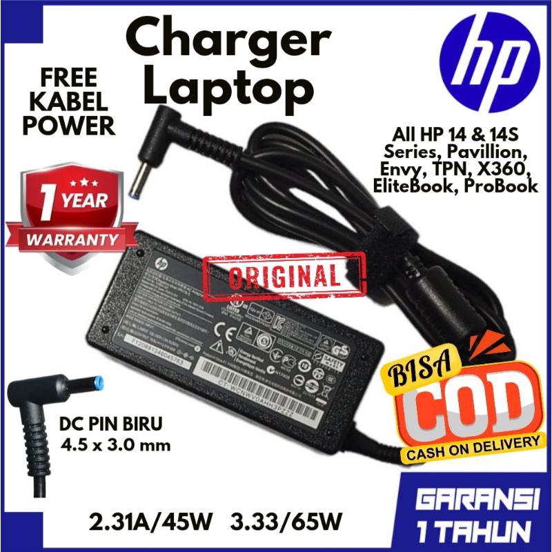 [PROMO] Charger Laptop HP Original Pin Biru 14 14s Pavillion Envy TPN X360 Elitebook ProBook 3