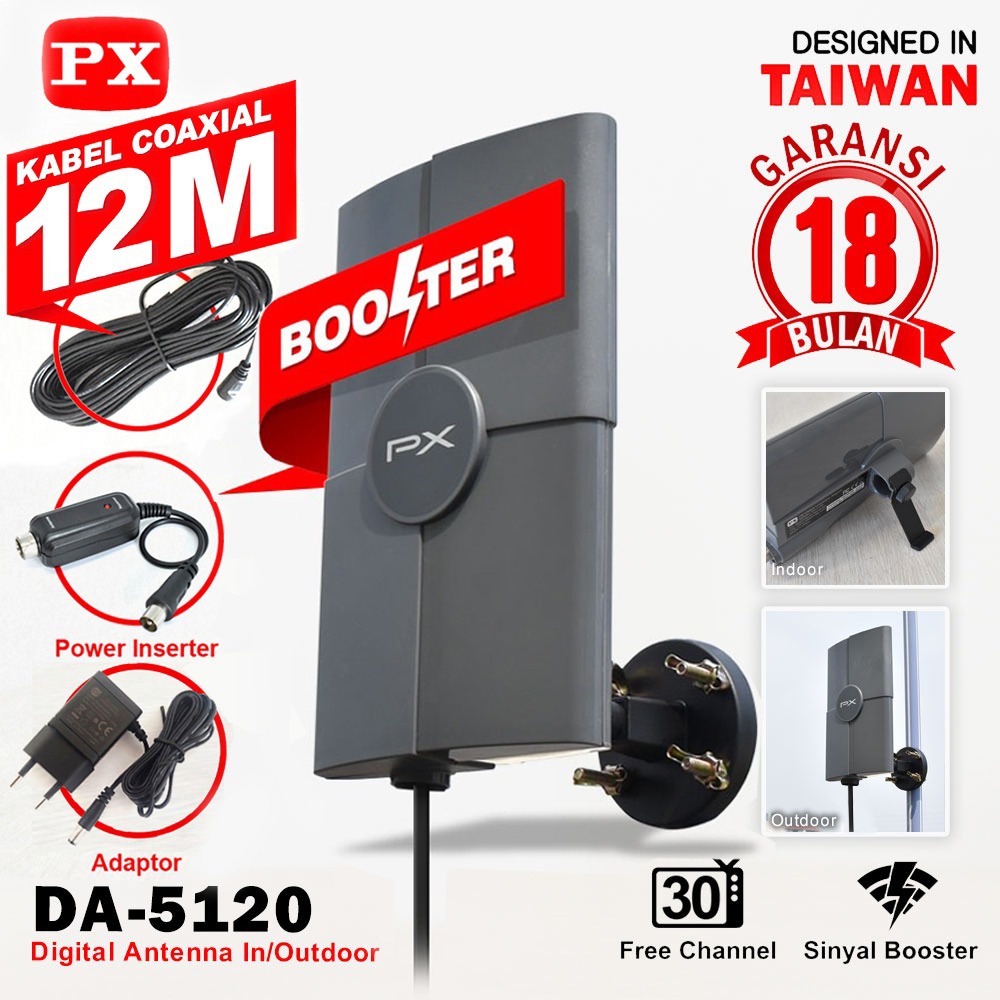 Antena TV Digital Analog PX DA-5120 Kabel 12M Booster Indoor-Outdoor