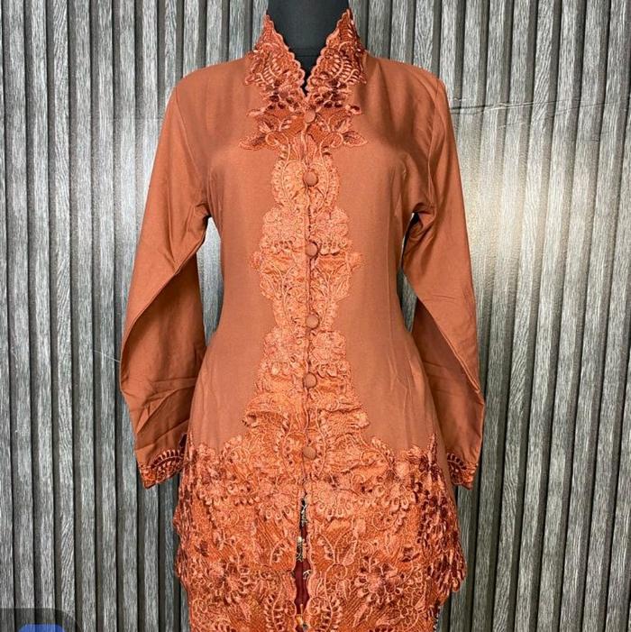KEBAYA ENCIM BORDIR SENADA KATUN POLOS WANITA TANGAN PANJANG CANTIK DRESS CANTIK DRESS REMAJA MEWAHTEBAL// BAJU PESTA KONDANGAN DEWASA - TERACOTTA, SIZE M