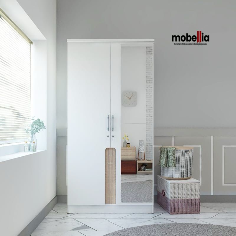 lemari pakaian putih minimalis.