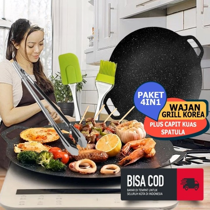 Wajan Panggangan Grill Pan Korea Datar Anti Lengket Ukuran 34cm -AMS