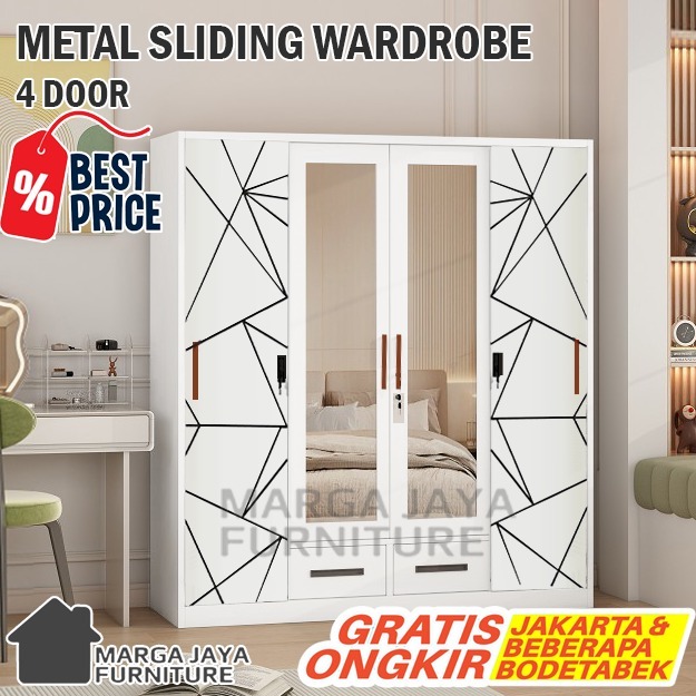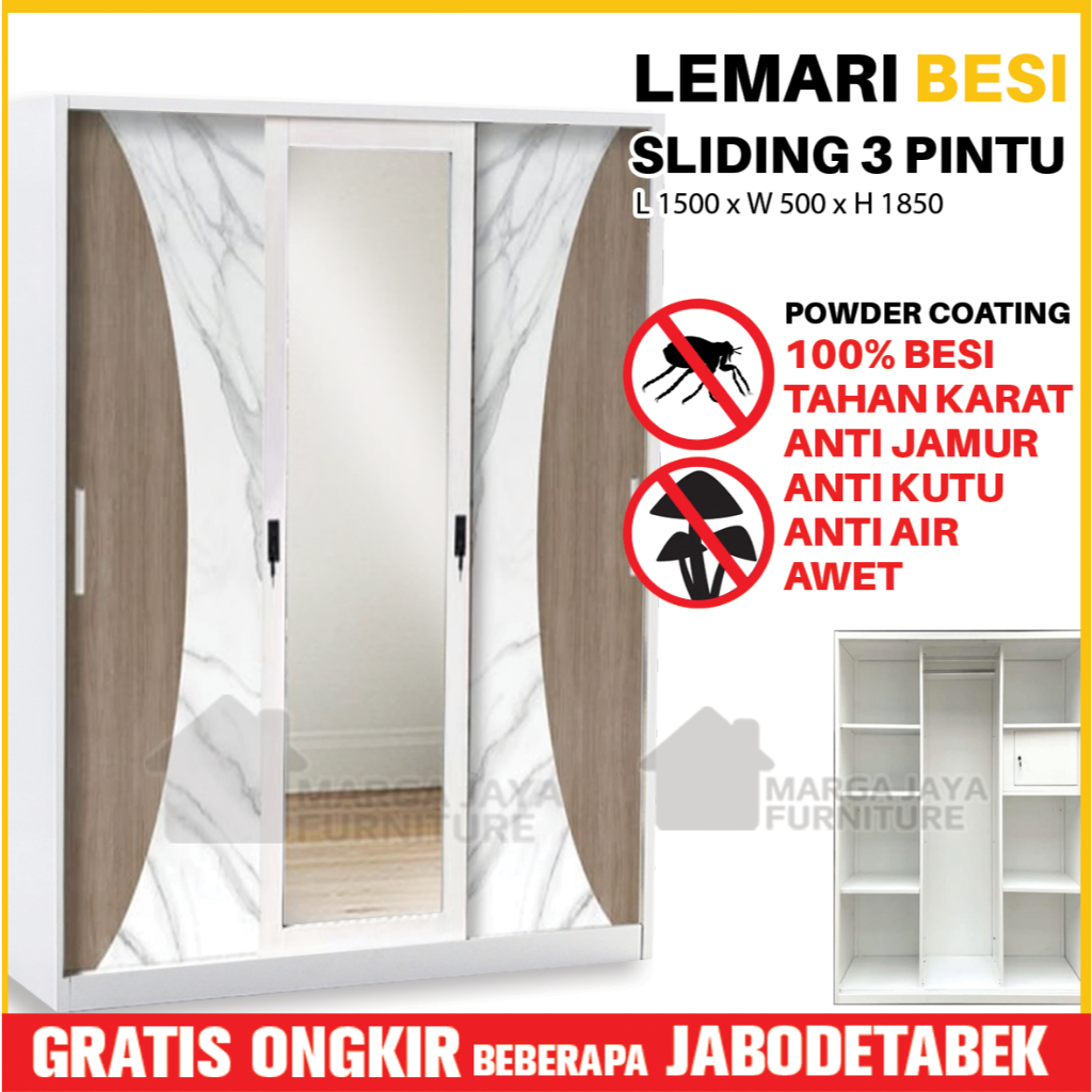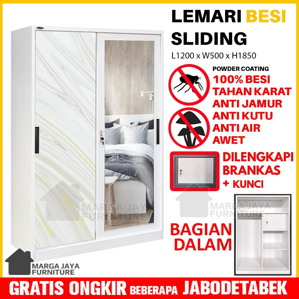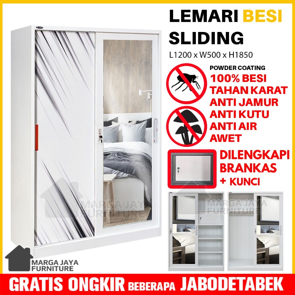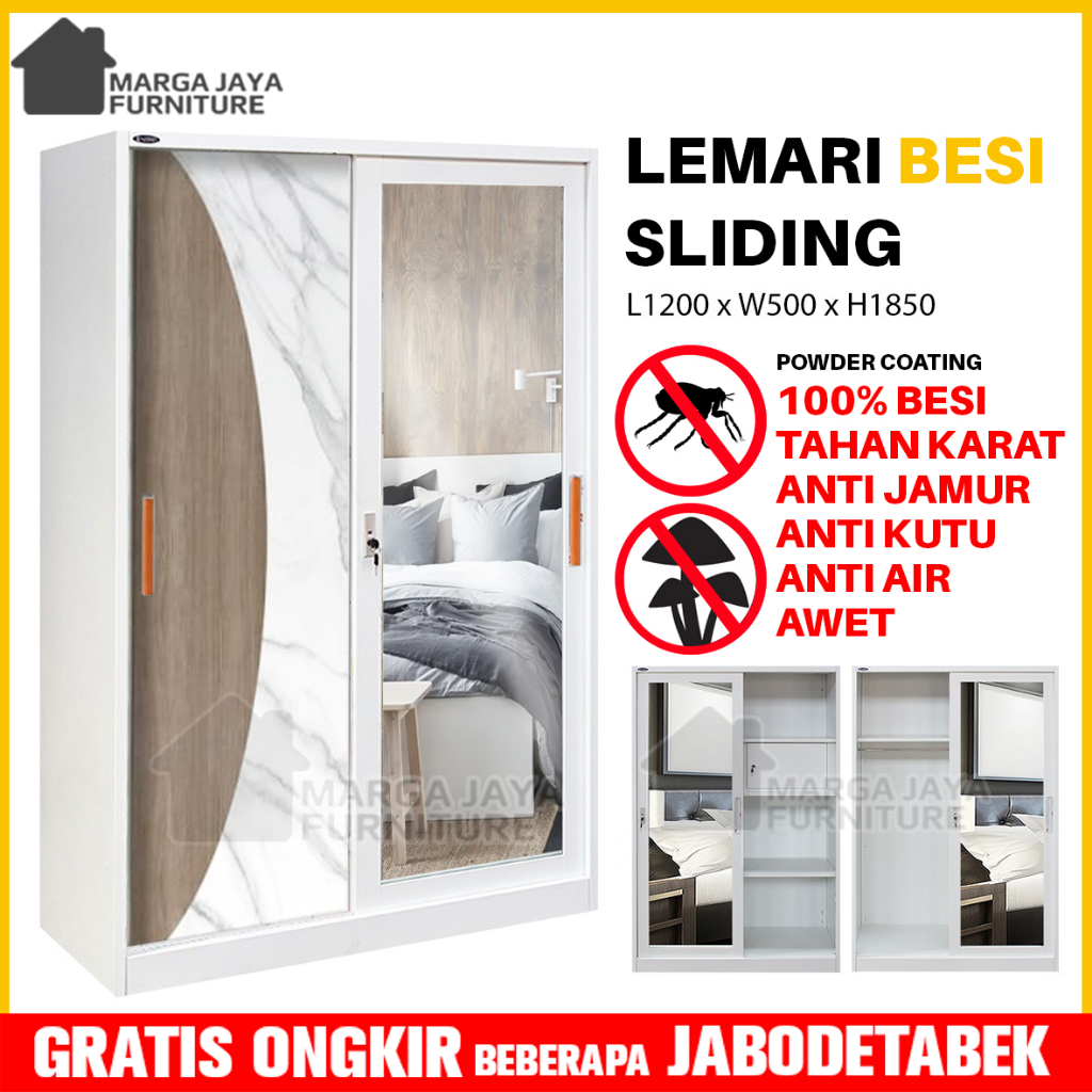 Lemari Pakaian BESI JUMBO Sliding 2 / 3 Pintu Wardrobe Baju Anti Jamur Rayap Banjir Lebih Tahan Karat