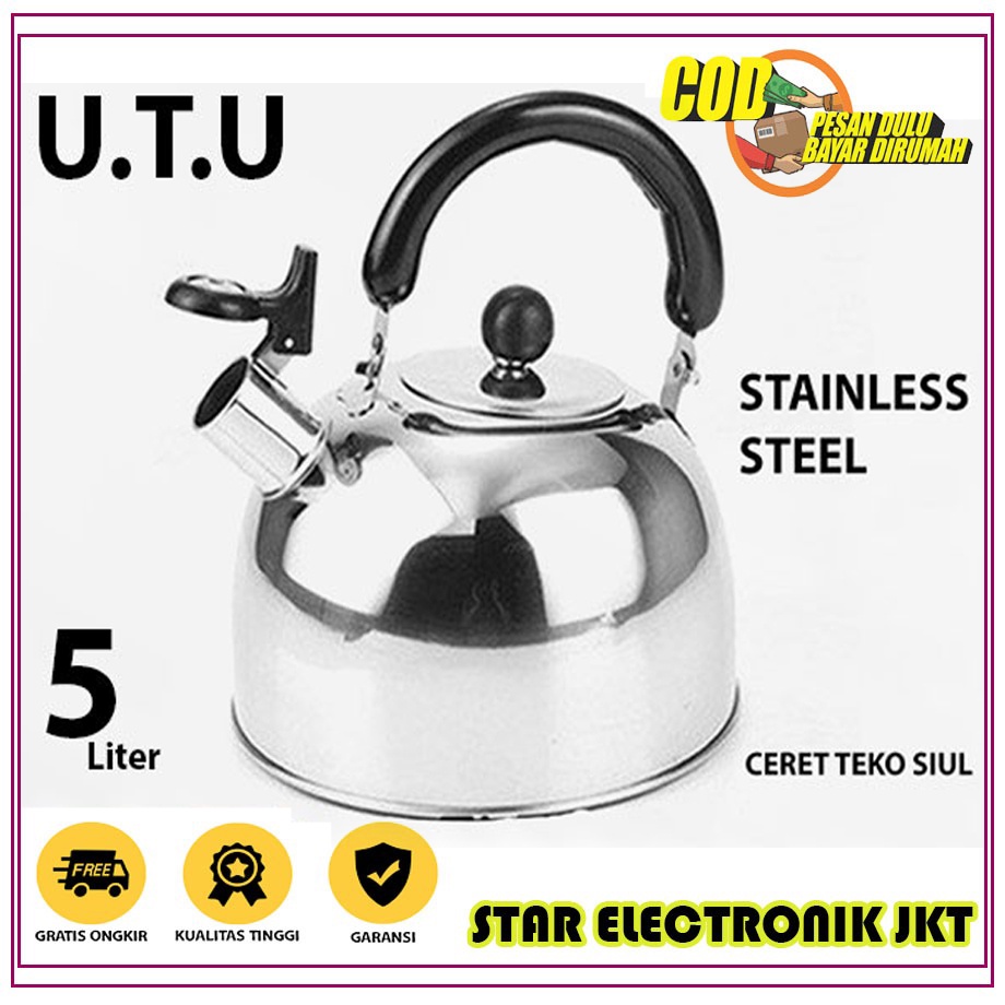 [PROMO] UTU Kettle Ceret Teko Siul Stenlies Steel Ukuran 5 Liter