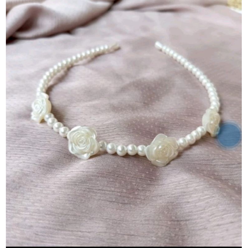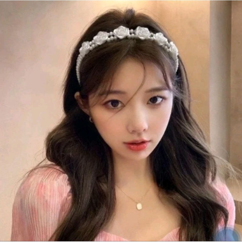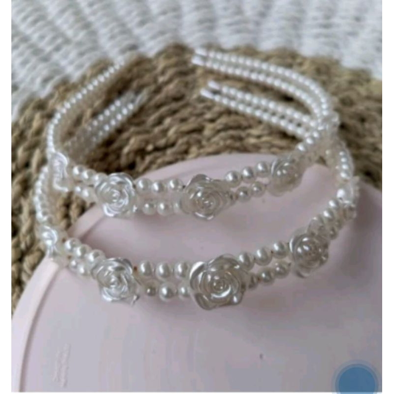 Bando Wanita Corea Kombinasi Bunga Manik Sintetis