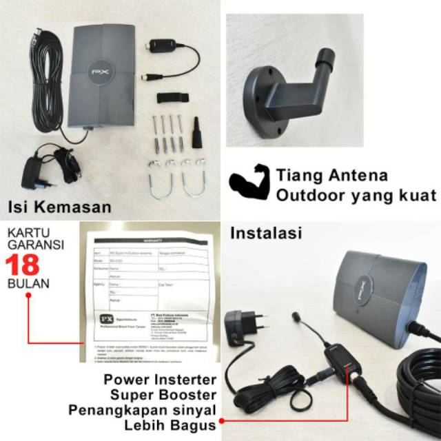 Antena Tv Digital Indoor Outdoor PX DA 5120 Free Kabel 12meter include booster